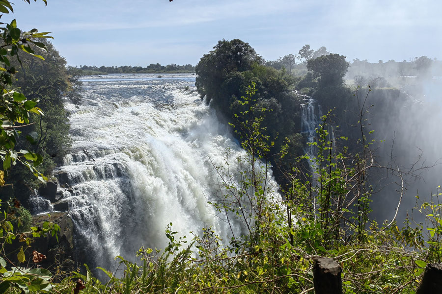 这个瀑布最美那一段,应该是被喻为「魔鬼湾」的拐点。是一个狭谷,赞比西河在这个有一个拐弯,两边带黑色的岩崖,加上水气雾气萦绕,一副中国水墨画出现了。咱来两次,驻足一下下,感受著这样的美感。